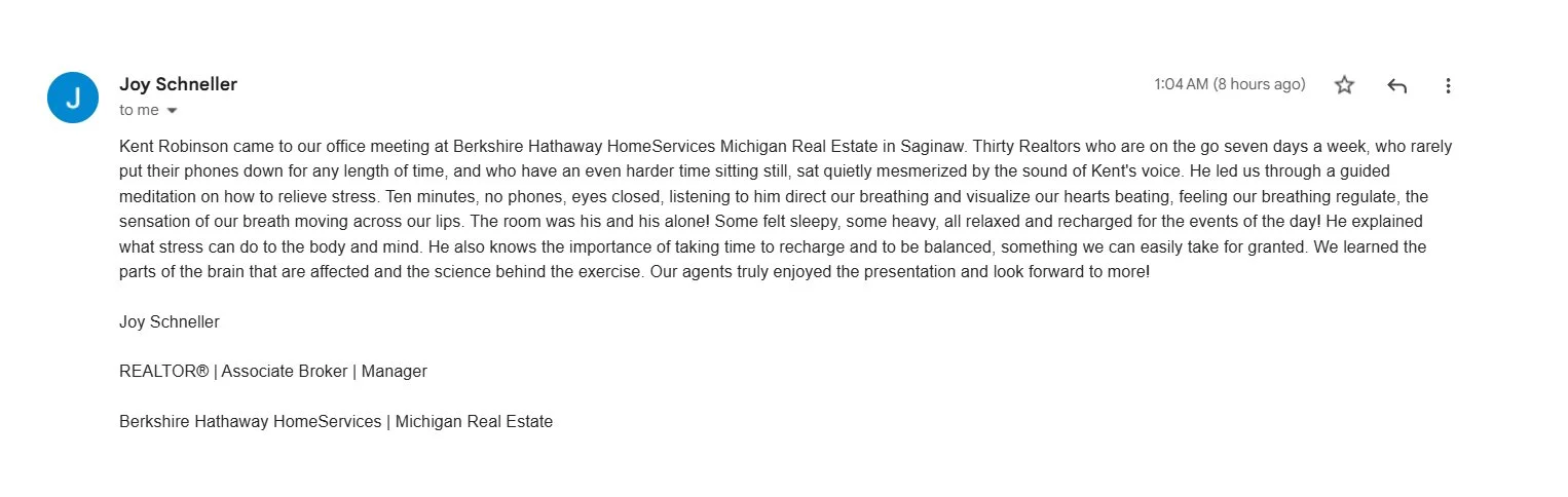 Testimonial from Joy Schneller from Berkshire Hathaway after hearing the